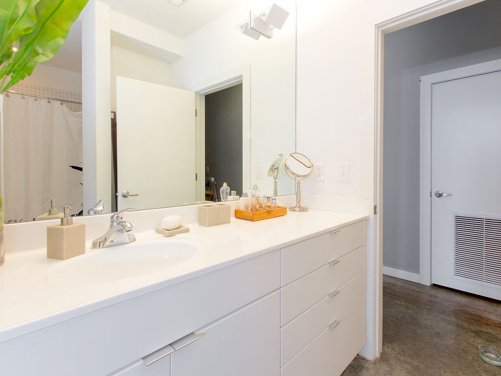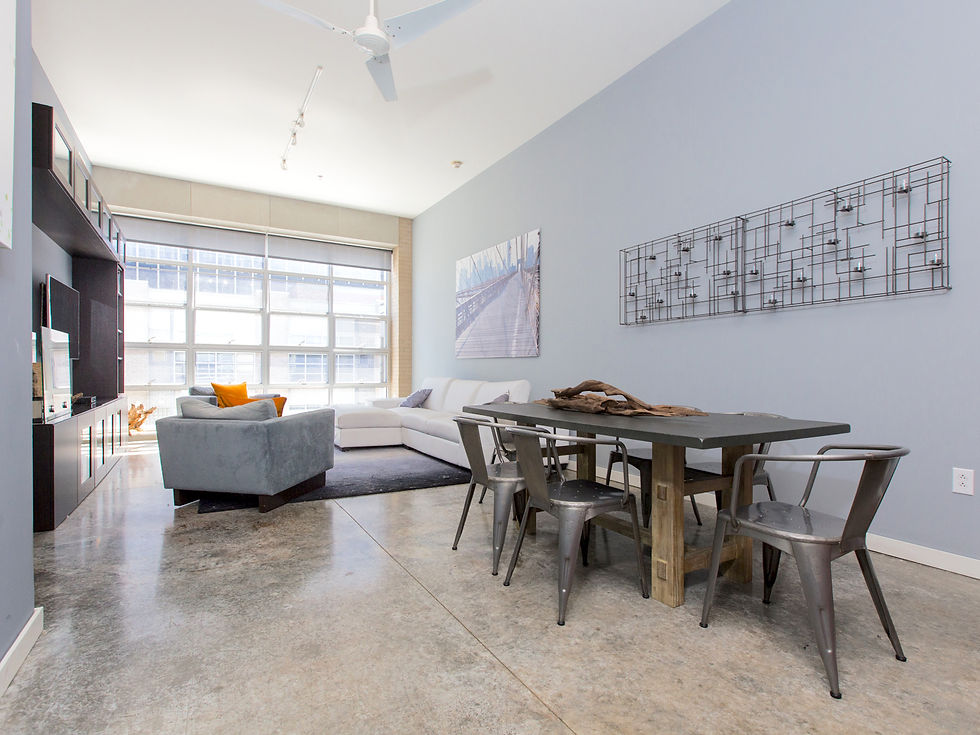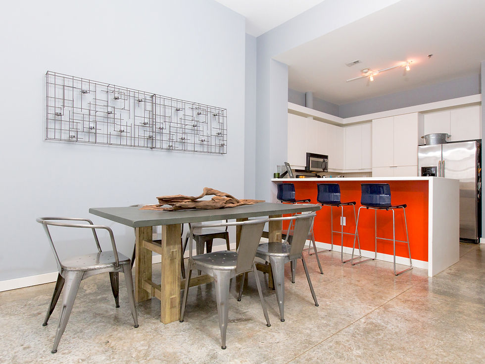 Contemporary Fayetteville Street Home for Rent. Furnished or Unfurnished Option Available. This top floor, 1 bedroom/1 bath unit features stunning concrete floors, open floorplan, bright kitchen, beautiful windows, W/D, 1 parking space. Condo overlooks community courtyard with downtown views. Community has secured parking, secured entry, fitness room. Only steps from your door to everything Downtown Raleigh has to offer.